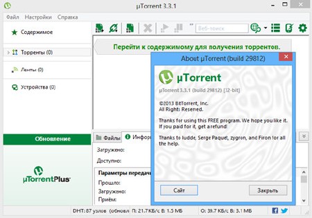 µTorrent - достаточно мощный, бесплатный клиент сети BitTorrent, постоянно получающий наилучшие отзывы. Среди главных преимуществ µTorrent - впечатляющий (для малого размера программы) набор возможностей, стабильная работа, поддержка устаревшего «железа» и старых версий Windows.